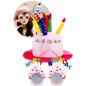 バースデーハット 大人 パーティーメガネ サングラス付 お誕生日帽子 ケーキハット 58cm(ピンク)