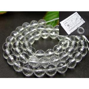 g3-306M 8mm 128面カット 5A 水晶 クリスタル クォーツ 1連39cm 通し針、解説書、1mゴム付き 鑑別済・本物保証 ブラジル産 送料無料 天然石 パワーストーン