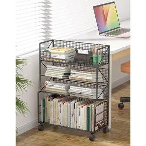 本棚 キャスター付き 4段 ブックシェルフ 収納棚 大容量 デスクサイド本棚 簡単な組み立て 高さ65cm コミック 絵本 雑誌 教科書 学校/オフィス用
