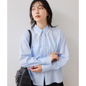ブラウス シャツ 無地&ストライプダブルカラーウエスト切り替えシャツ レディース