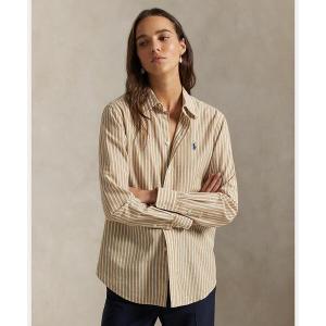 ブラウス シャツ クラシック フィット ストライプド コットンリネン シャツ レディース