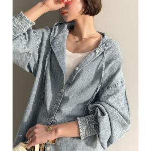 ブラウス シャツ 「JaVaジャバコラボ」軽やかに、さらりと。コットン100%フード付き袖シャーリングシアーデニムシャツ(長袖) レディース