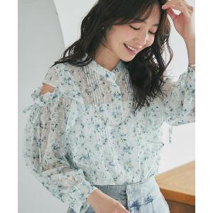 ブラウス シャツ 「WEB限定」SHIPS any:「洗濯機可能」フラワー モチーフ ペプラム ギャザー シャツ ブラウス レディース