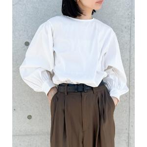 ブラウス シャツ SPONGY クルーネック ギャザー ブラウス レディース