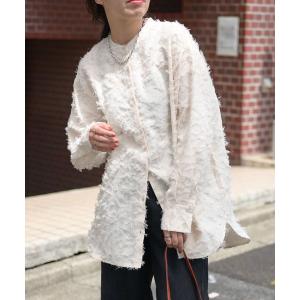 ブラウス シャツ ノーカラーフリンジオーバーブラウス(シャツ/高身長/低身長) レディース