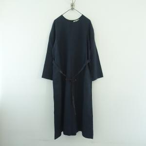 【未使用/定価4.1万】ヴラスブラム Vlas Blomme *ミディアムリネンベルト付きワンピース*F麻濃紺ドレス(j25-2510-175)【13J52】