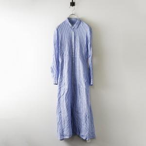 美品 120% Lino 120パーセントリノ ストライプシャツワンピース 40 ブルーストライプ┃麻素材 ロング丈【2400014657678】