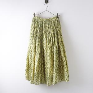 メゾンドソイル maison de soil ブロックフラワープリントスカート 2\イエロー タック フレア ゴム ロング 花柄【2400014679694】