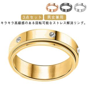 メンズ 緩和 指輪 チタン 輝き 回転可能 キラキラ ペアリング リング おしゃれ レディース 3点セット 高級感 シンプル 回転リング ストレス解消