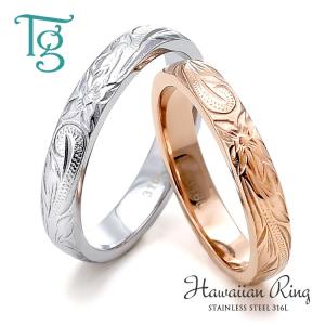 ハワイアンジュエリー ペアリング 刻印 ステンレス 2本セット 安い 金属アレルギー対応 甲丸 スクロール プルメリア おしゃれ ハワイアン マリッジリング