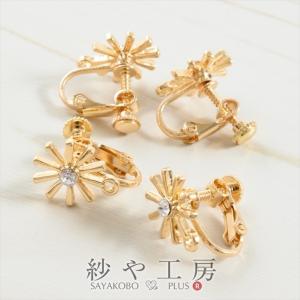 イヤリング パーツ ニッケルフリー 変退色防止加工済 金属アレルギー対応 太陽 ストーン付 カン付 ゴールド 14mm 2ペア アクセサリーパーツ