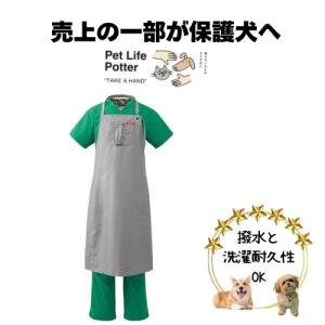 【売上の一部が保護犬へ】トリマーエプロン(ドライヤーホルダー付き)AL0009 グレー 1枚 トリミング 犬猫 ペット シャンプー カット 撥水 耐久性