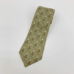HERMES エルメス ネクタイ シルク 7533 ペリカン 魚 スーツ用小物 ビジネス メンズ カーキ系 ネクタイ DF14581■