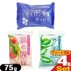 ペリカン石鹸 石けん モイスチャ―ソープ 75g x4個セット (桃の葉・アロエ・ヒアルロン酸せっけんより選択) 「ネコポス送料無料」