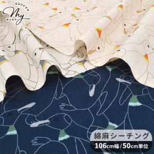 生地 布 布地 綿麻 シーチング 可愛い 密集 ペンギン ■ 動物 アニマル 親子 インテリア バッグ 雑貨 ハンドメイド 手芸 手作り ■