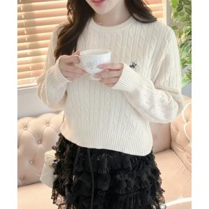 ニット セーター 「BEVERLY HILLS POLO CLUB」ケーブル編みショート丈ワンポイント刺繍ニット レディース