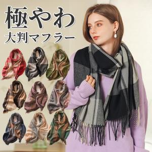 カシミヤタッチ マフラー 厚手 大判ルーシーストール レディース ストール 秋冬 大きいサイズ 大判ストール チェック柄 無地 ショール ひざ掛け 肩掛け 羽織り