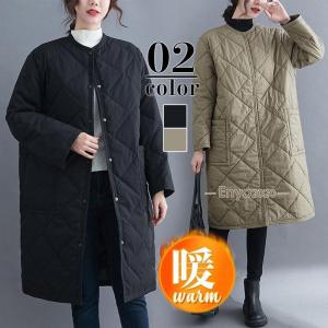 キルティングコート レディース 中綿コート 襟なし ロング丈 キルティング 無地 軽量 大きいサイズ 暖かい アウター あったか ゆったり