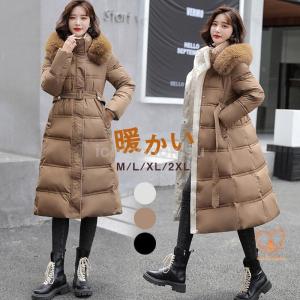 中綿コート レディース キルティングコート ダウンジャケット ダウンコート 秋冬 ロング丈 ベルト付き アウター 韓国風 フード付き ファー