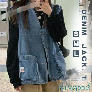 デニムベストレディースジャケットノースリーブアウターデニムベストトップスカーディガンカーデ羽織り前開