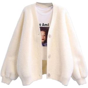 ニットカーディガン レディース ボアコート アウター 秋冬 無地 ふわふわ 可愛い おしゃれ 防寒 体型カバー コート ゆったり Vネック