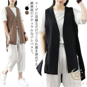 ベスト ロングベスト 綿麻混 サマーベスト レディース アウター シニアベスト 薄手 春夏秋 羽織り 敬老の日 ママ 母 プレゼント ボタ