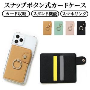 スマホ カードケース 貼り付け 背面 後付け リング付き 4色 スタンド 貼る 360度回転 非磁石 スナップボタン式 動画視聴に最適 カード2枚入れ 即納