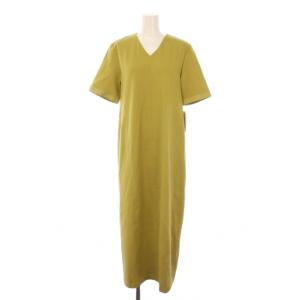 未使用品 ミラオーウェン Mila Owen 22SS Vネックコクーンシルエットカットソーワンピース 半袖 ロング 1 黄緑 レディース