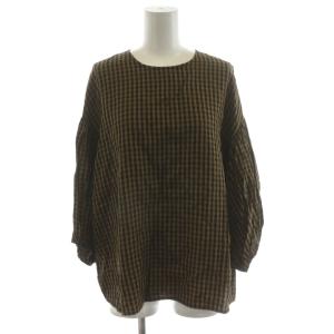 ミラオーウェン Mila Owen 23AW クルーネックボリュームスリーブブラウス シャツ 長袖 チェック 0 黄 イエロー 黒