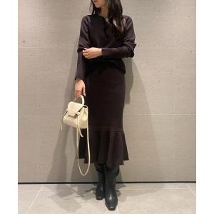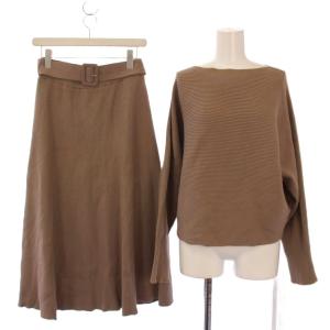 ミラオーウェン Mila Owen セットアップ 上下 ニット セーター 長袖 フレアスカート ロング ベルト付き リブ ウール 0 茶 レディース
