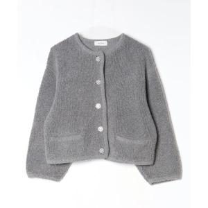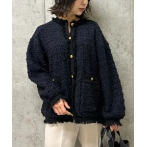 ミラオーウェン Mila Owen 24SS ツイードニットジャケット カーディガン ボリュームスリーブ フリンジ 1 ライム /MY ■OS ■SH レディース