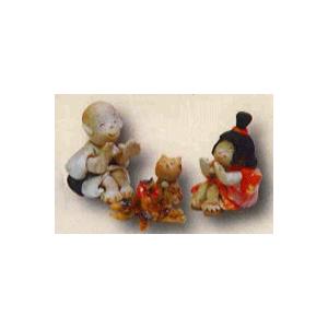 (和雑貨)手作りの陶人形 一休さんとさよちゃん たき火