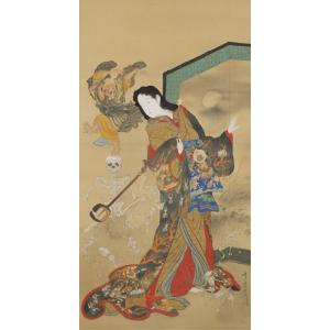 絵画風 壁紙ポスター【フルサイズ版】 河鍋暁斎 きょうさい 地獄太夫と一休 落款 惺々狂斎画 キャラクロ K-KNK-001S2(313mm×603mm)<日本製>