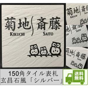 二世帯住宅用に招福デザイン追加しました 150角玄昌石風タイル表札「シルバー」 石感のある表札 戸建て マンション用 おしゃれ 和風 追加マグネット可