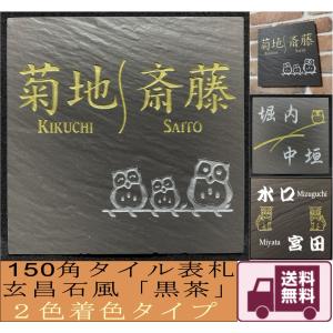 二世帯住宅用招福デザイン 150角玄昌石風タイル表札「黒茶」2色着色タイプ 石感のある表札 戸建て マンション用 おしゃれ 和風 追加マグネット可
