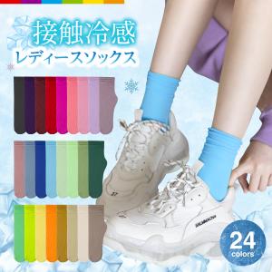 靴下 レディース 冷感 リブソックス 無地 ソックス 夏 夏用 ひにゃり 接触冷感 おしゃれ オシャレ クルー丈