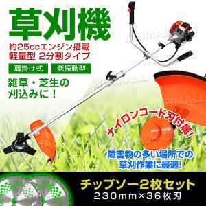 家庭用草刈り機 エンジン式 草刈り機 刈払機 芝刈り機 ナイロンカッター ナイロンコード 金属刃 チップソー 2枚付き 2分割 25.4cc