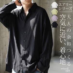 シャツ メンズ 長袖 レーヨン 無地 エアリー 送料無料・50ptメール便可