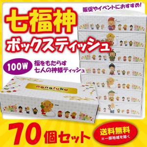 おもしろ景品・販促品 * 七福神BOXティッシュ 100W 7P 70個セット(1c/s) * 縁起物ノベルティ 開運