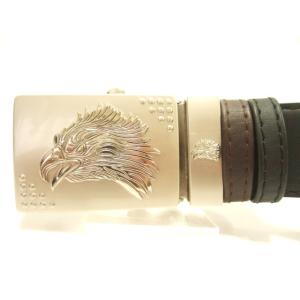 横浜最新 鷲イーグル♪魅惑のバックル付合皮ベルト銀色 メンズレディース 送料350円9a