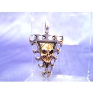 横浜最新 シルバーSILVER925銀ペンダント♪魅惑のスカール 金色ドクロ 9.2g メンズレディース 送料220円ネックレス65a