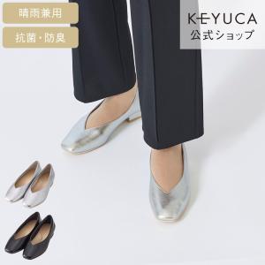 パンプス レインパンプス 歩きやすい 疲れない 柔らかい 黒 フラット 防水 抗菌 防臭 レディース | KEYUCA 晴雨兼用 ソフトフィットVカットパンプス ケユカ