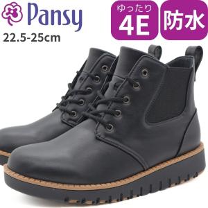 パンジー ブーツ レディース 靴 ショートブーツ 黒 ブラック 保温 暖かい 4E 幅広 防水 レースアップ サイドゴア 履きやすい 歩きやすい 疲れない Pansy 4655