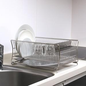 水切りラック どこでも置けるトレー付き ステンレス製 アットアクア ( 水切りかご 水切りカゴ 水切りバスケット )