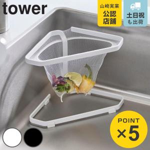 山崎実業 tower 水切りネットが付けられる三角コーナー タワー ( 4903208015554 タワーシリーズ 三角コーナー 水切りネットホルダー )