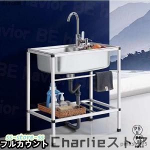 流し台 シンク 簡易式 ステンレス製 キッチン 一槽シンク ゴミ受け ガーデン 水回り 野菜洗い 屋外 庭 農園 工場 アウトドア キャンプ 排水トラップ 水栓