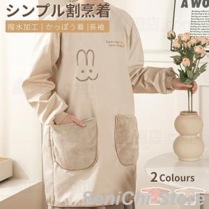 割烹着 かっぽう着 長袖エプロン 水回り作業 防水エプロン 秋冬羽織エプロン ロングエプロン 体型カバー 作業服 仕事着 袖付き羽織エプロン キッチン エプロン