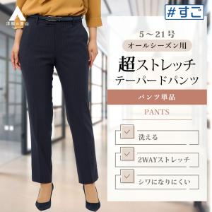 【洋服の青山】超ストレッチスーツ セットアップ 単品 テーパードパンツ レディース 春夏秋冬 ネイビー ストライプ 裾上げ済み 洗える 動ける シワになりにくい