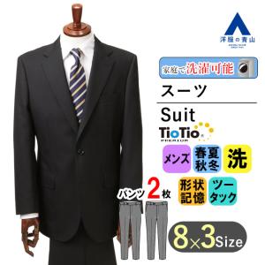 【洋服の青山】ツーパンツ スーツ メンズ スタンダード プリーツ加工 ブラック 秋冬 ビジネス ウォッシャブル 洗える 形状記憶 抗菌 消臭 防汚 制電 REGAL