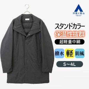 【洋服の青山】スタンドカラーコート メンズ 秋冬 グレー 灰色 大きいサイズ 立ち襟 暖かい 撥水 軽量 軽い 防風 雨 ビジネス 通勤 通学 出張 営業 カジュアル